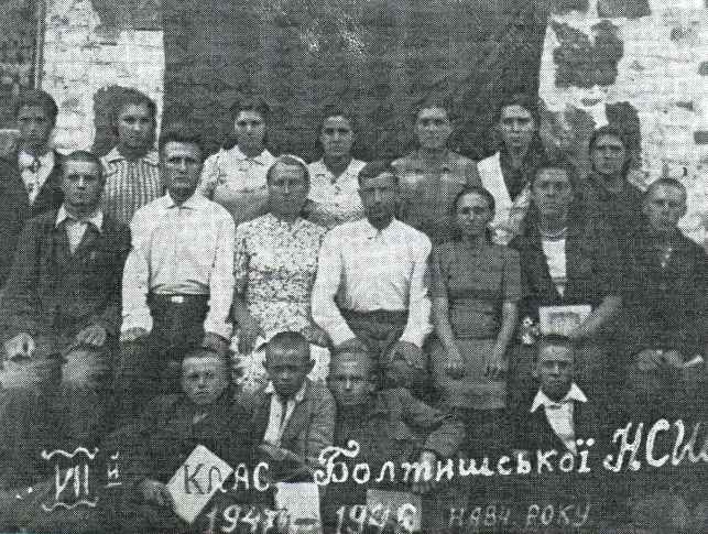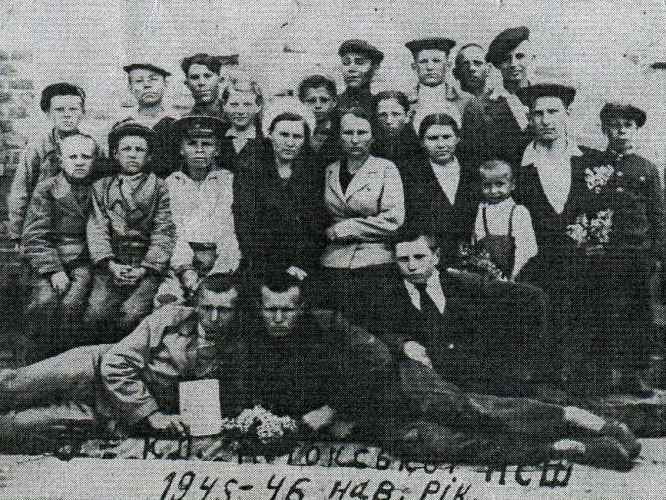 Далі брат Микола говорив: "Навчання в школі не відразу розпочалися. Та все-таки поновлена радянська влада знайшла кошти для школи і ми пішли вчитися. Четвертий клас я закінчив навесні 1944 року. А вже в п'ятому класі розпочалася "чехарда". Під час окупації підлітків забирали на примусові роботи до Німеччини, а їхати туди добровільно ніхто не хотів, тому вони переховувалися під час таких операцій і про навчання навіть мови не було. Наприклад, Шурко Баль одягався в жіноче вбрання і це його врятувало від фашистського рабства. Коли прийшли наші війська, постало питання про навчання цих дітей-переростків. Ось чому нас в п'ятому класі стало дуже багато. Не всі переростки хотіли вчитися, а такий, як Степан Карабаш, наш троюрідний брат по батьківській лінії, окрім хуліганства нічого більше не робив в школі. Це було не навчання, а знущання над вчителями і дітьми, які бажали набути хоч які-небудь знання. Навесні 1945 року дехто із переростків залишив навчання. Звичайно в такій ситуації про якість навчання мова не йшла. Тому педагогічний колектив прийняв рішення: всім бажаючим вчитися знову пройти курс за п'ятий клас, і 1 вересня 1945 року я знову розпочав програму п'ятог1о класу. Але і це рішення не дало позитивного результату. Наприкінці навчального року в 1946 році нас залишилося і закінчило навчання за п'ятий клас лише 13 учнів.
